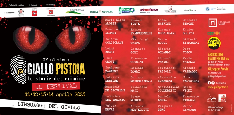 CNA Pensionati Toscana Centro rinnova il suo supporto al Festival del Giallo che si terrà a Pistoia dall’11 al 14 aprile compresi.
