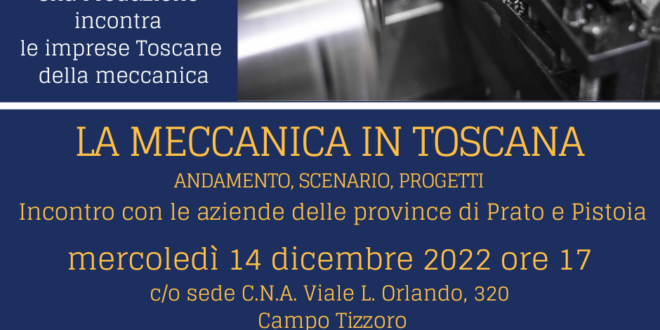 Saranno presenti all’incontro il Presidente di CNA Meccanica Regionale Paolo Conti e il Presidente territoriale di CNA Meccanica Leonardo Fabbri.