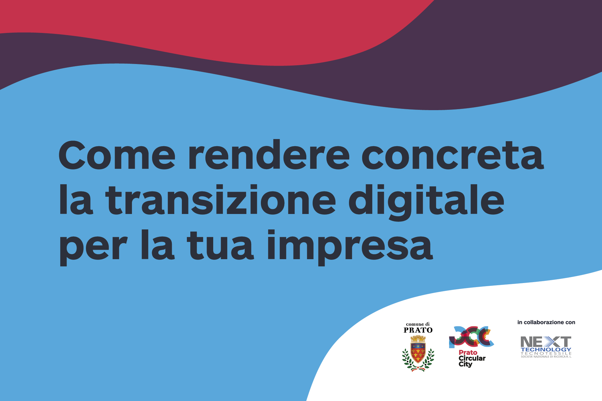 Domani 12 maggio alle ore 16 si terrà il Webinar: “Come rendere concreta la transizione digitale” promosso dal Comune di Prato nell’ambito di Prato Circular City, con la partecipazione del Ministero per lo sviluppo economico e di Next Tecnology Tecnotessile. Si affronteranno in maniera approfonditai temi relativi al Piano Transizione 4.0 ed alle opportunità a sostegno della digitalizzazione del sistema economico locale.